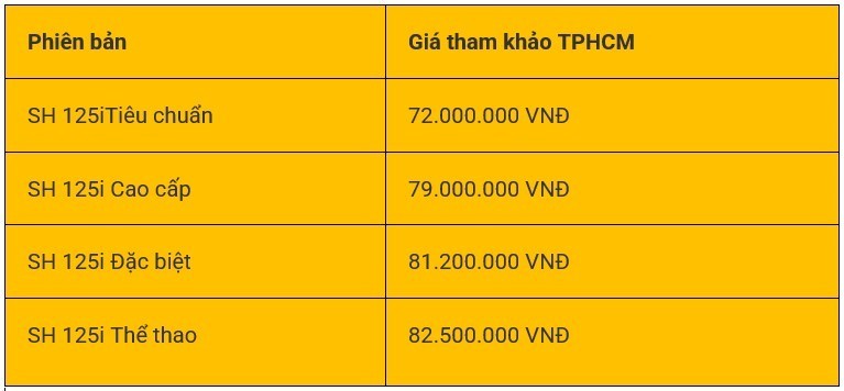 | Bảng giá xe SH 125i tại Honda Head Hồ Chí Minh mới nhất |