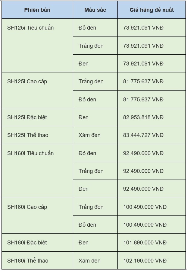 Để mua được xe SH nam nữ giá tốt, khách hàng cần nắm mức giá đề xuất từ Honda Việt Nam để có một tiêu chuẩn so sánh giá.