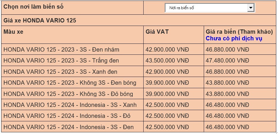 | Giá xe Vario 125 phiên bản mới nhất 2024: Giá xe ngày 18/6/2024 |