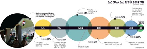 Các dự án đầu tư bất động sản khác của Đồng Tâm như: Khu đô thị Trung tâm hành chính tỉnh Long An, Khu dân cư Bắc Lê Lợi (thành phố Quảng Ngãi), Khu dân cư Long Định-Long Can (huyện Cần Đước, Long An), giai đoạn 2 Khu công nghiệp Thuận Đạo (Bến Lức, Long An) cũng trong tình trạng đầu tư dở dang do thiếu vốn.