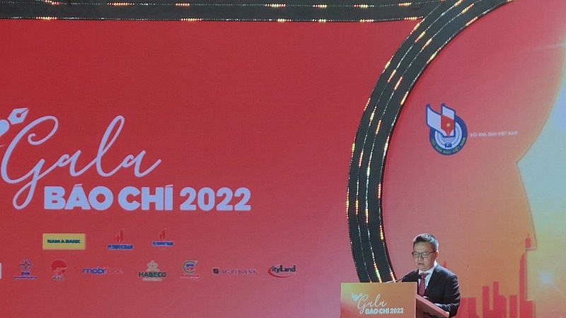 Nhà báo Lê Quốc Minh - Ủy viên BCH Trung ương Đảng, Tổng biên tập Báo Nhân Dân, Phó Trưởng ban Tuyên giáo Trung ương, Chủ tịch Hội nhà báo Việt Nam phát biểu tại Gala. |