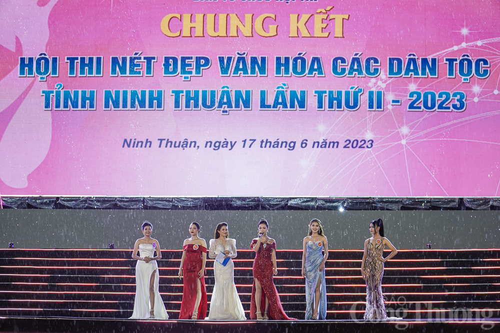| Hoa hậu Hoàn vũ Việt Nam 2022 Ngọc Châu xuất hiện rạng rỡ với trang phục dạ hội sang trọng, lấp lánh, trao vương miện cho thí sinh Ngô Thanh Ngân đoạt giải Nhất Hội thi Nét đẹp văn hóa các dân tộc tỉnh Ninh Thuận lần thứ II – 2023. |