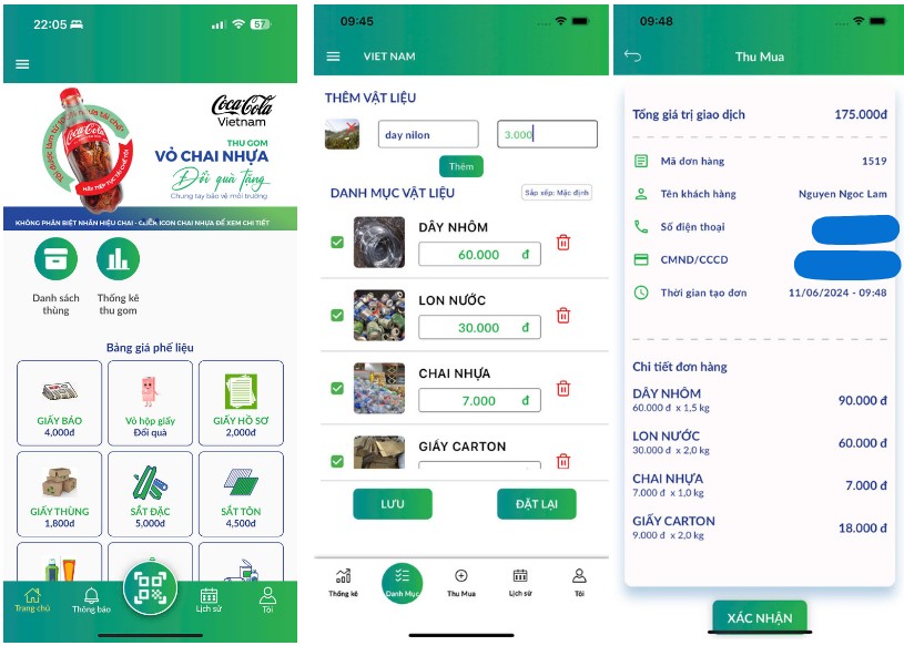 Ngoài ra, VECA cũng là một ứng dụng được thiết kế đặc biệt cho mô hình kinh doanh vựa phế liệu. Với khả năng chuyển đổi số các hoạt động mua và bán tại vựa phế liệu, VECA hỗ trợ chủ vựa phế liệu quản lý việc mua bán ve chai một cách hiệu quả và tiện lợi ngay trên chiếc điện thoại thông minh, từ việc ghi lại các giao dịch một cách chính xác. Qua đó, ứng dụng này sẽ giúp kiểm soát tỷ lệ hao hụt và thất thoát, đảm bảo quá trình kinh doanh diễn ra hiệu quả và tiết kiệm.