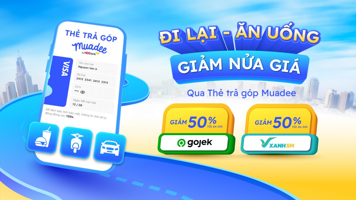 Một chuyến xe công nghệ hay đặt món ăn với giá từ 50.000 đồng, chỉ cần trả trước 0 đồng? Khách hàng chỉ cần lựa chọn thanh toán bằng thẻ trả góp Muadee by HDBank trên Gojek và Xanh SM để tận hưởng ưu đãi này.