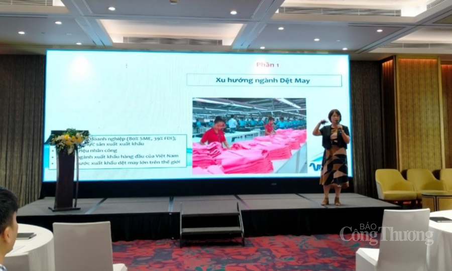 | Bà Nguyễn Thị Tuyết Mai – Phó Tổng thư ký, phụ trách Văn phòng đại diện Hiệp hội Dệt may Việt Nam (VITAS) tại TP. Hồ Chí Minh chia sẻ tại hội thảo |