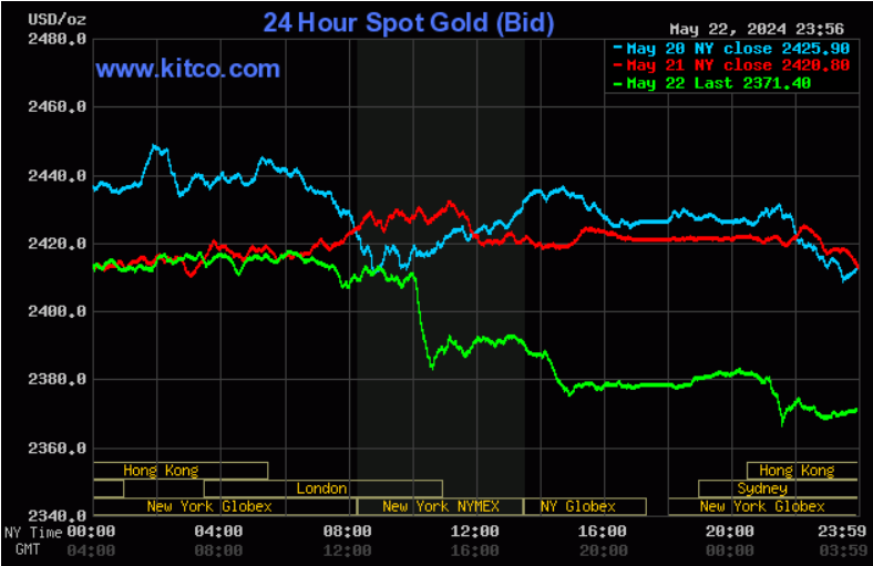 Thời điểm trưa ngày 24/5, giờ Việt Nam, giá vàng thế giới giao dịch tại mốc 2.337 USD/ounce. Giá vàng thế giới quy đổi sang VND (đã tính thuế, phí gia công) đang ở mức 72,29 triệu đồng/lượng, như vậy, chênh lệch giữa giá vàng SJC trong nước và thế giới rơi vào khoảng 17,23 triệu đồng/lượng.