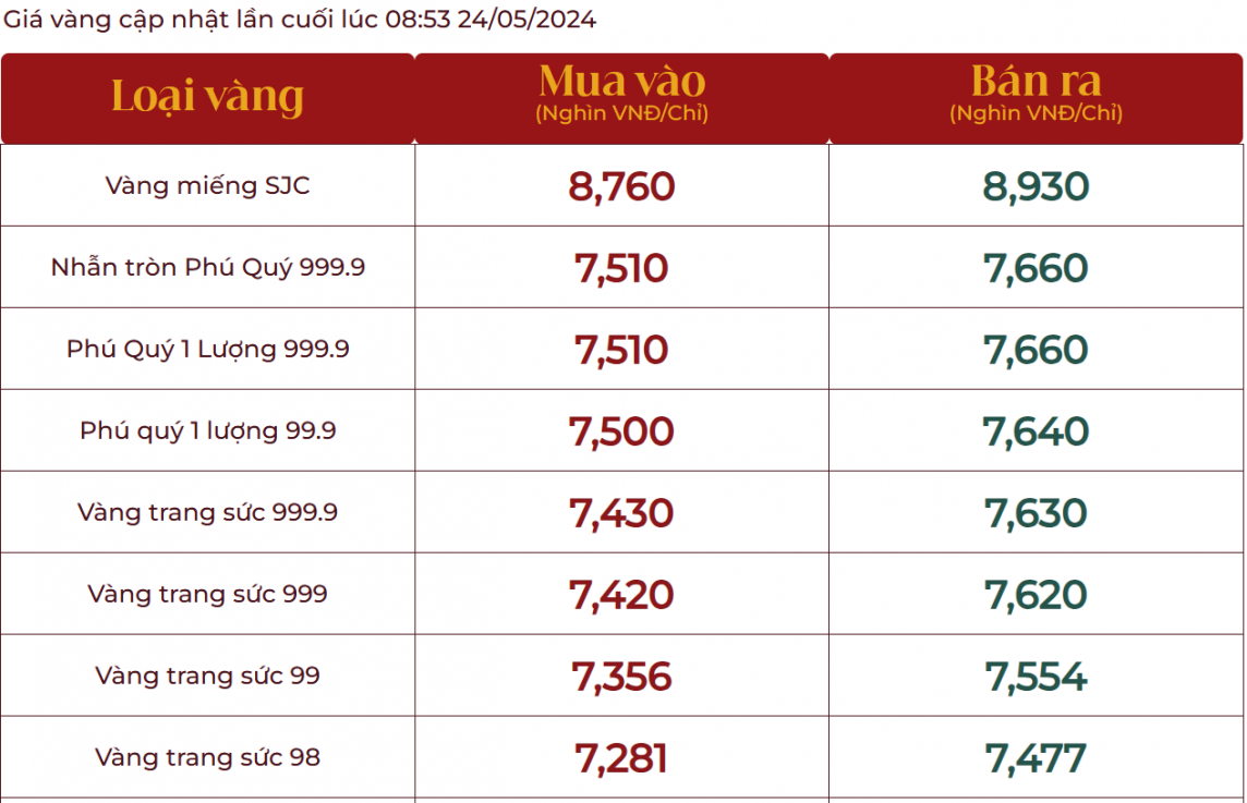 | Giá vàng giao dịch tại Tập đoàn Phú Quý |
