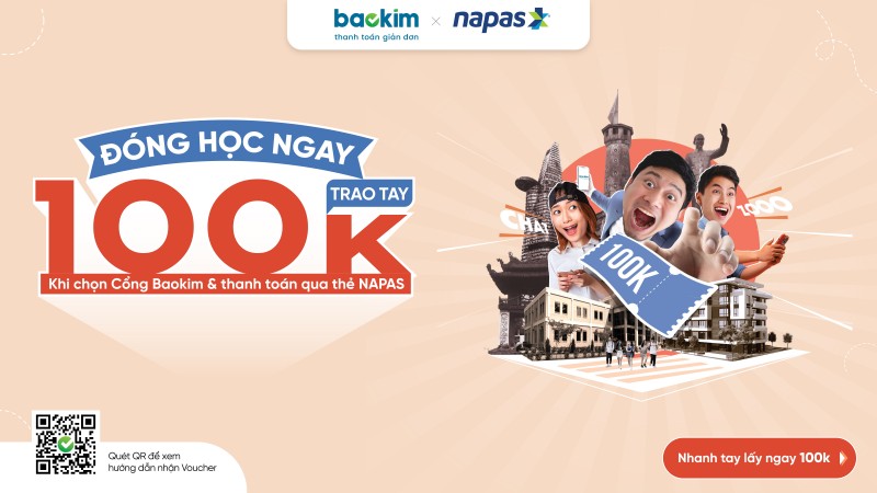 Theo đó, khách hàng là chủ thẻ NAPAS và là sinh viên tại các trường đại học khi thanh toán học phí trực tuyến bằng phương thức thẻ NAPAS qua cổng thanh toán điện tử của Bảo Kim sẽ được tặng mã khuyến mại trị giá 100.000 VND (trừ trực tiếp vào giá trị của giao dịch thanh toán) với giao dịch từ 200.000 VND trở lên. Tổng số lượng sinh viên hưởng ưu đãi dự kiến lên đến 16.000 sinh viên trong cả nước.