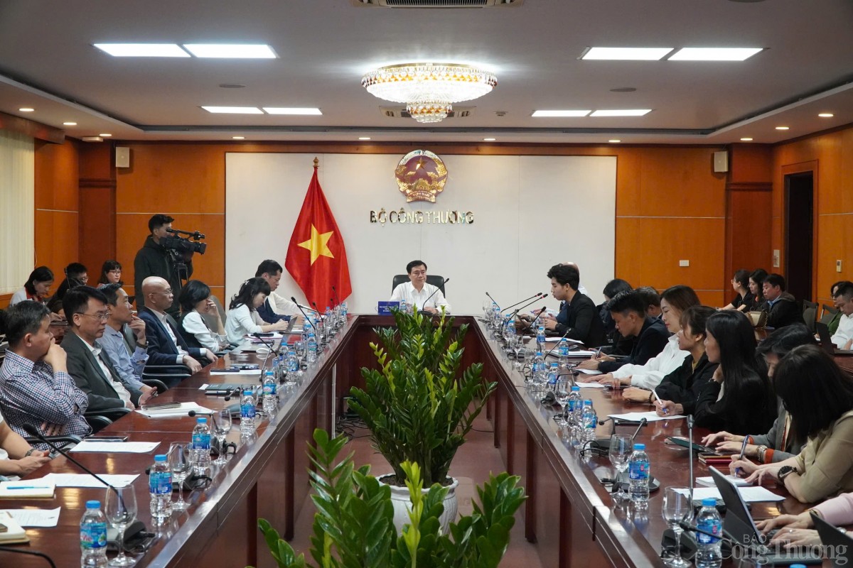| Thứ trưởng Bộ Công Thương Nguyễn Sinh Nhật Tân chủ trì Hội nghị giao ban xúc tiến thương mại với hệ thống thương vụ Việt Nam ở nước ngoài tháng 3/2025. Ảnh Minh Trang |