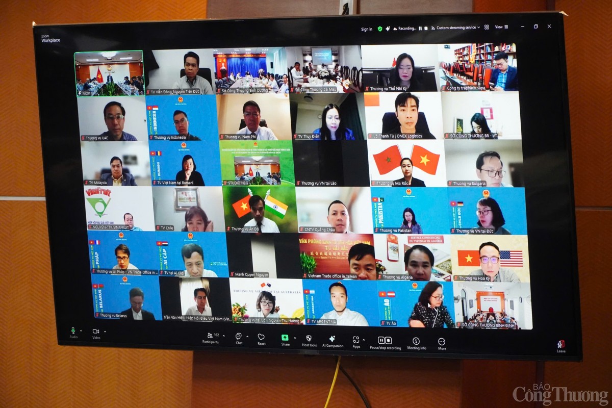 | Đại diện các thương vụ Việt Nam tại nước ngoài tham dự trực tuyến Hội nghị. Ảnh Minh Trang |