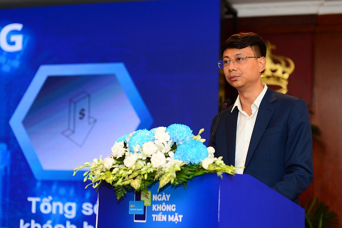 | Ông Lê Anh Dũng, Phó Vụ trưởng Vụ Thanh toán phát biểu tại buổi họp công bố chuỗi sự kiện Ngày không tiền mặt 2024 |