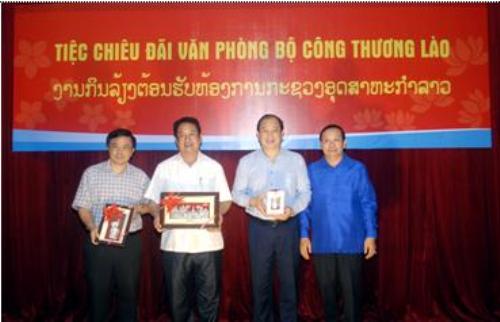Thứ trưởng Bộ Công Thương Lào Bounmy Manivong tặng kỉ niệm chương cho Bộ Công Thương Việt Nam, đại diện Lãnh đạo UBND tỉnh Nghệ An và Sở Công Thương Nghệ An