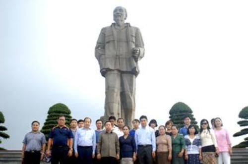 Đoàn công tác chụp ảnh lưu niệm tại tượng đài Chủ tịch Hồ Chí Minh tại thành phố Vinh – Nghệ An