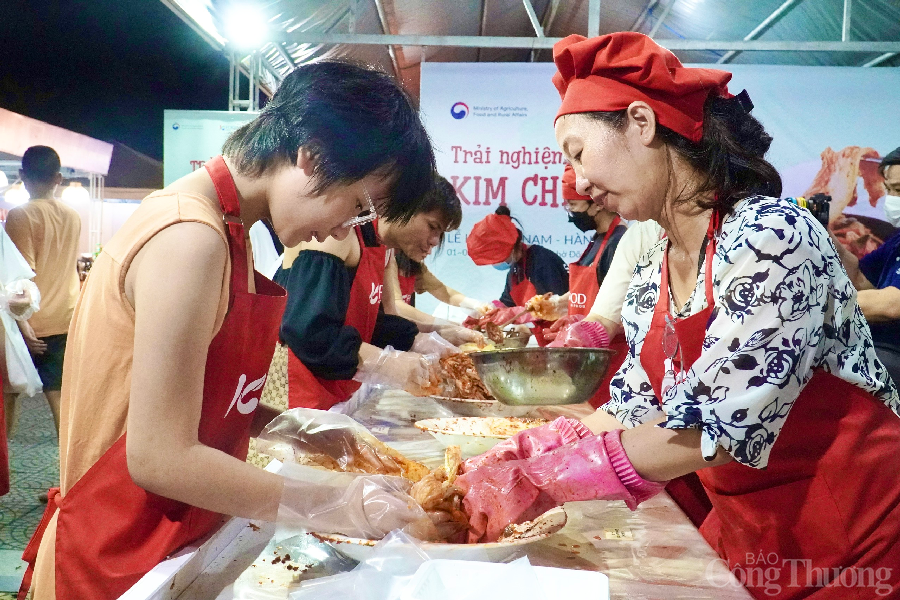 | Du khách được trải nghiệm làm kim chi - món ăn truyền thống Hàn Quốc tại lễ hội |