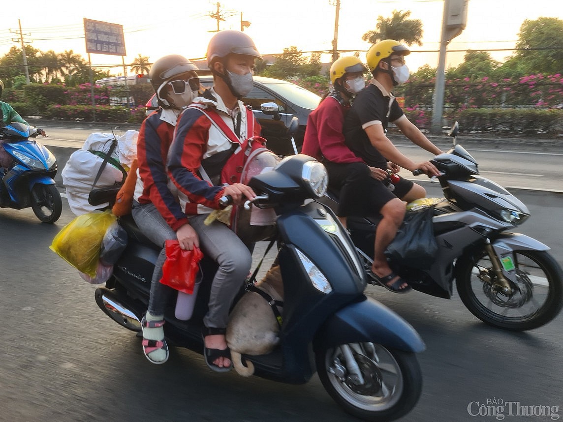 | Ngoài xe khách, nhiều người dân cũng chọn xe máy để di chuyển từ khu vực miền Tây về TP. Hồ Chí Minh. Ảnh Hữu Long |