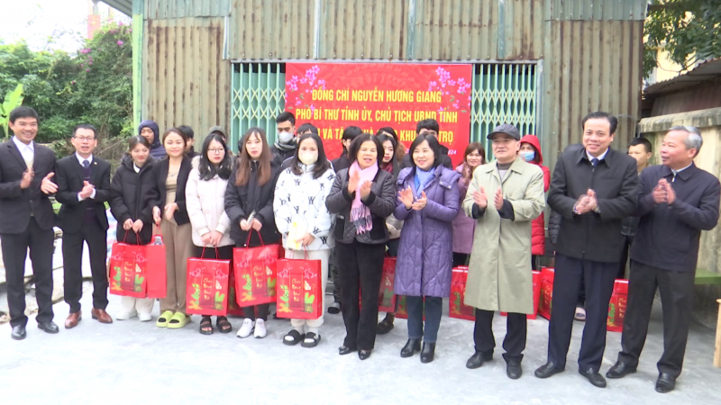 | Chủ tịch UBND tỉnh Bắc Ninh đến thăm, tặng quà Tết công nhân lao động khu nhà trọ xã Nội Duệ, huyện Tiên Du |