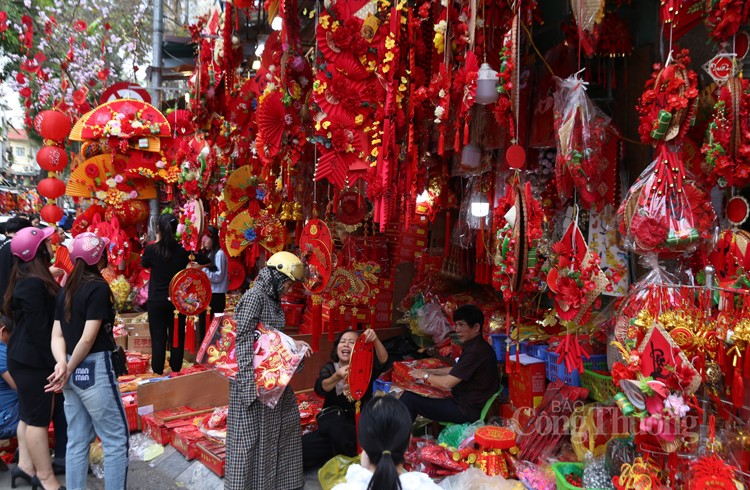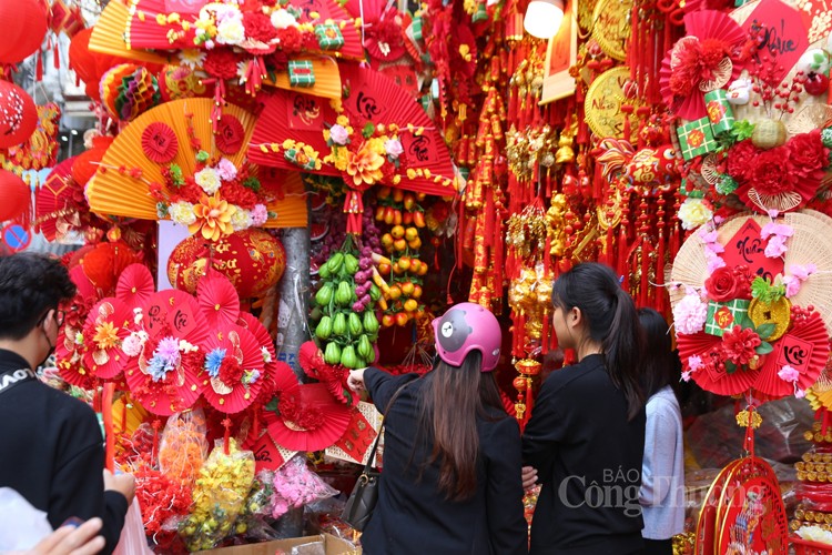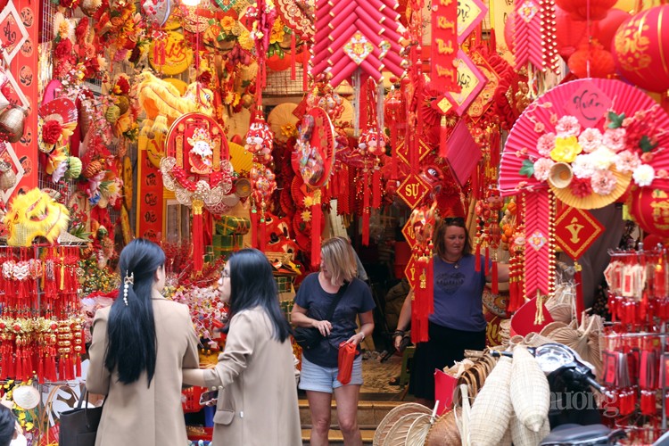 Vào những ngày này, các cửa hàng dọc hai bên phố Hàng Mã ngập tràn không khí Tết bởi các mặt hàng trang trí rực rỡ sắc đỏ và vàng (hai sắc màu chủ đạo nổi bật nhất, tượng trưng cho sự may mắn, sung túc và thịnh vượng trong lễ Tết cổ truyền).