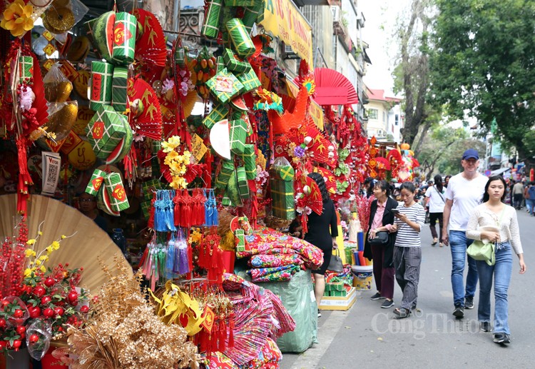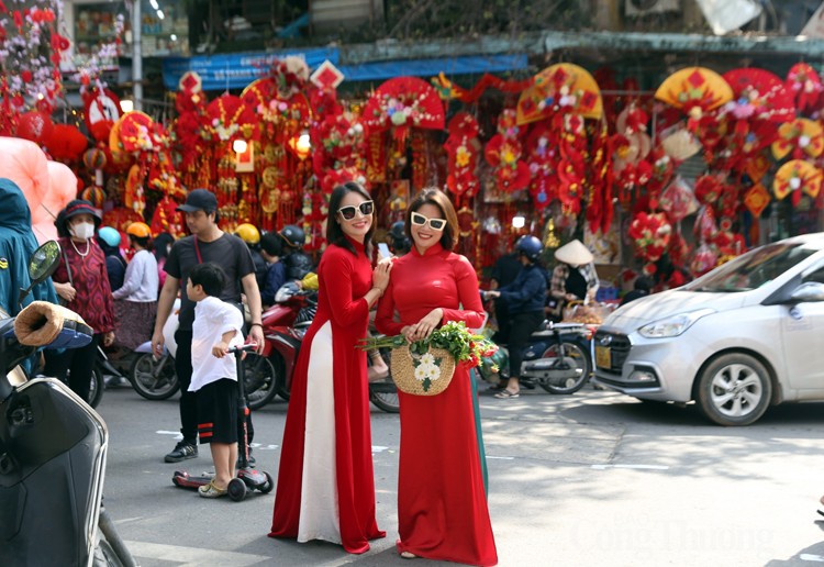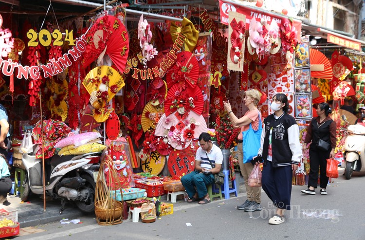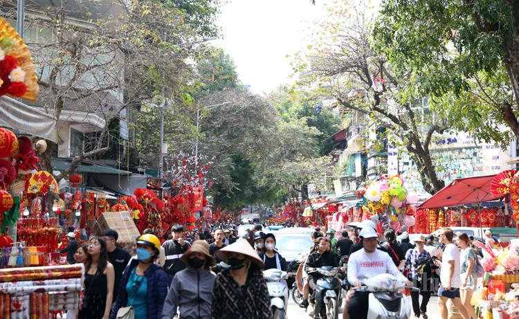 Người dân đến phố Hàng Mã không chỉ tham quan, chiêm ngưỡng, mua sắm mà còn là địa điểm check-in lý tưởng để có những bộ ảnh kỷ niệm. Đây cũng là dịp để bố mẹ, ông bà dẫn con cháu của mình đến mua các món đồ chơi Tết và tìm hiểu thêm phong tục Tết cổ truyền của dân tộc Việt Nam.
