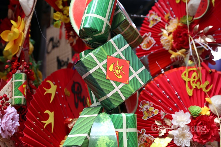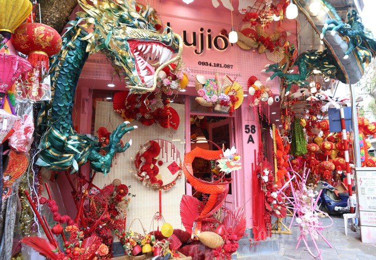 Chị Lê Hà - chủ cửa hàng trên phố Hàng Mã chia sẻ: Các mặt hàng trang trí Tết được bày bán trên phố Hàng Mã năm nay khá phong phú và đa dạng mẫu mã, chủng loại. Trong đó, ngoài những mẫu mã truyền thống như: Bánh chưng, giò, dưa hấu, tràng pháo, câu đối, đèn lồng…thì hình tượng con rồng, linh vật của năm 2024 được làm vô cùng đẹp mắt. Các sản phẩm trang trí nhà cửa dịp Tết năm nay có giá bán khá ổn định từ vài chục nghìn đồng đến vài trăm nghìn đồng (tùy theo mặt hàng, mẫu mã to, nhỏ khác nhau).