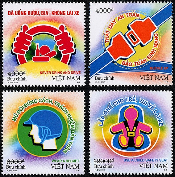 Trước đó, Bộ tem “An toàn giao thông đường bộ (bộ 1)” được phát hành ngày 05/9/2020 gồm 04 mẫu tem chuyển tải 04 thông điệp: