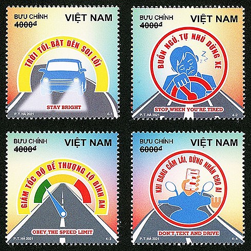 Bộ tem “An toàn giao thông đường bộ (bộ 2)” được phát hành vào ngày 05/9/2021 gồm 4 mẫu tem chuyển tải 04 thông điệp:
