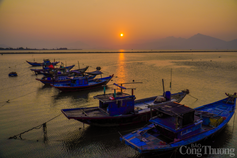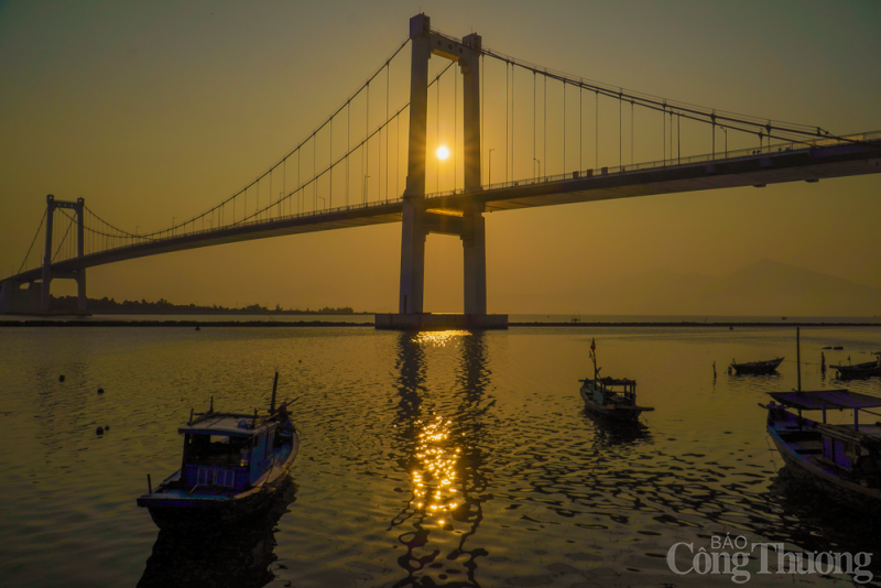 | Ngắm cảnh hoàng hôn dưới chân cầu Thuận Phước đẹp và thơ mộng với khung cảnh tàu cá của làng quê chài lưới xứ Quảng. |
