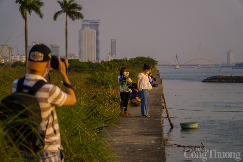 | Những ngày này, nhiều người dân, đặc biệt là giới trẻ thành phố Đà Nẵng đã đến khu vực dưới chân cầu Thuận Phước để "check-in", ngắm hoàng hôn. |