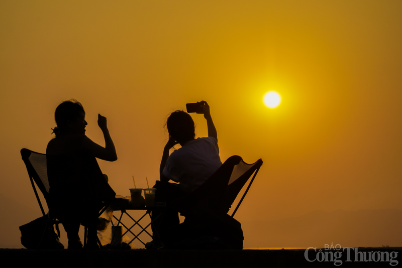 | Các bạn trẻ tranh thủ "check-in" khi hoàng hôn buông xuống. |