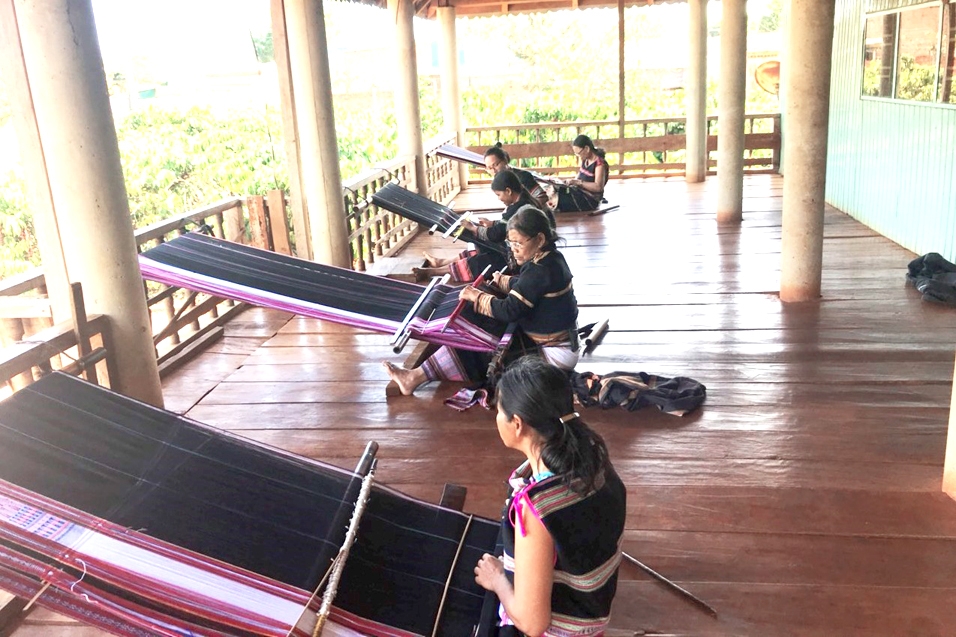 | Sau ngày mùa thu hoạch cà phê, thành viên Câu lạc bộ sẽ cùng nhau dệt thổ cẩm và tính chuyện giữ nghề, truyền nghề |