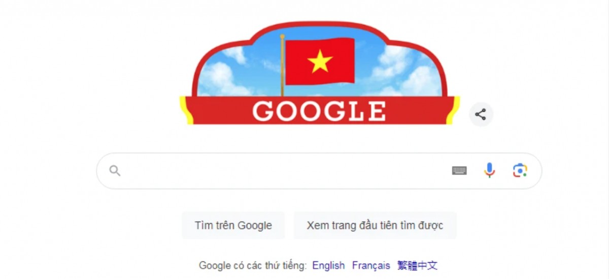 Hôm nay, 2/9, khi truy cập vào trang chủ Google, người dùng tại Việt Nam thấy phía trên khung tìm kiếm xuất hiện một biểu tượng đặc biệt, đó là hình ảnh lá cờ đỏ sao vàng - quốc kỳ Việt Nam đang tung bay giữa bầu trời xanh.