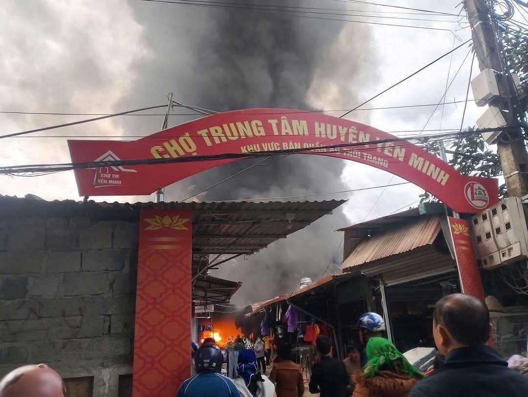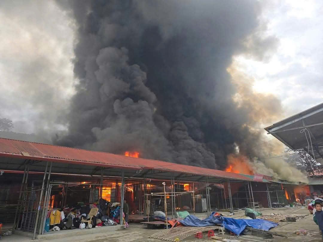 Theo ghi nhận, hỏa hoạn xuất phát từ gian hàng bán giày dép sau đó bùng lên dữ dội tạo thành cột khói đen cao hàng chục mét, bay mù mịt, nhiều gian hàng bị thiêu rụi.