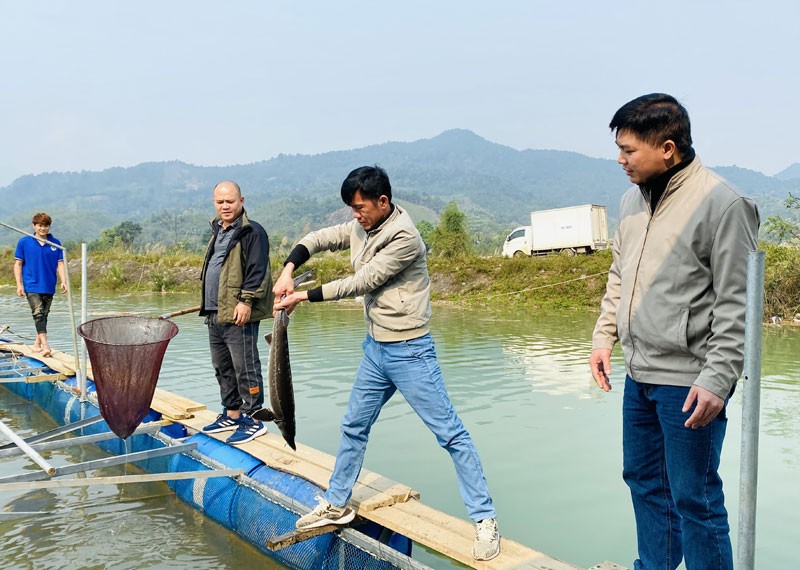 | Cá bỗng - sản phẩn nông nghiệp thế mạnh của Hà Giang được nuôi trong lòng hồ thủy điện |