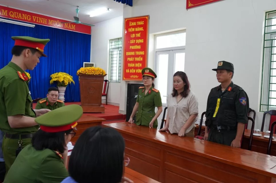 | Cơ quan điều tra đọc lệnh bắt Nguyễn Lan Hương (Ảnh: Công an Hà Giang) |