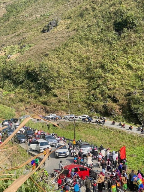 | Lượng lớn du khách lên với Hà Giang trong những ngày đầu Xuân gây ách tắc giao thông cục bộ ở một số tuyến đường |