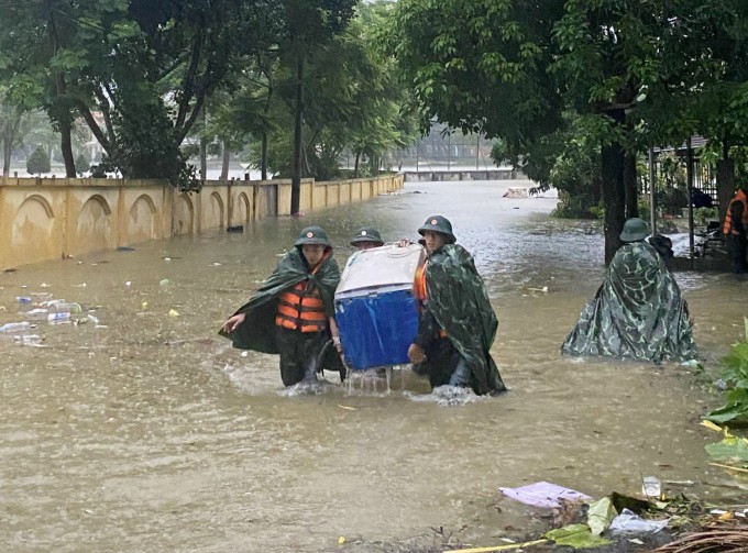 | Bộ đội dầm mình dưới mưa tham gia giúp dân di chuyển tài sản khỏi nơi ngập úng tại TP. Hà Giang |