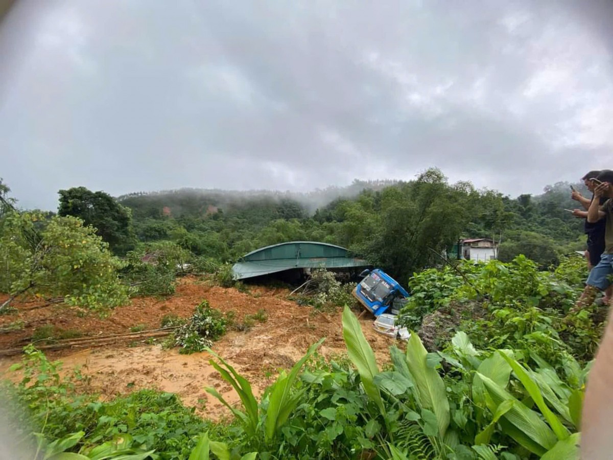 Bước đầu, quả đồi sạt lở vùi lấp 5 phương tiện, trong đó 1 ô tô khách, 1 ô tô bán tải và 3 xe máy.