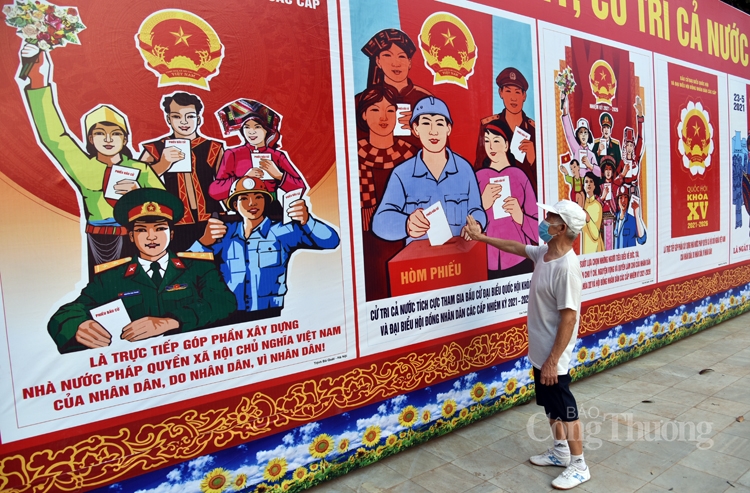 | Cụm tranh tuyên truyền cổ động bầu cử cỡ lớn tại Quảng trường 26.3 |