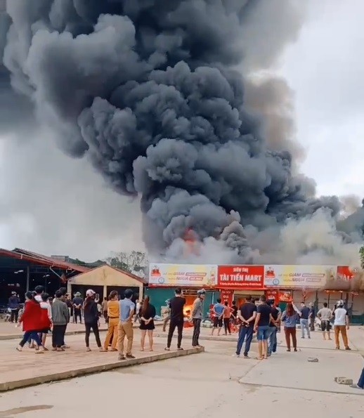 | Siêu thị Tài Tiến bốc cháy ngùn ngụt - Ảnh: CTV |