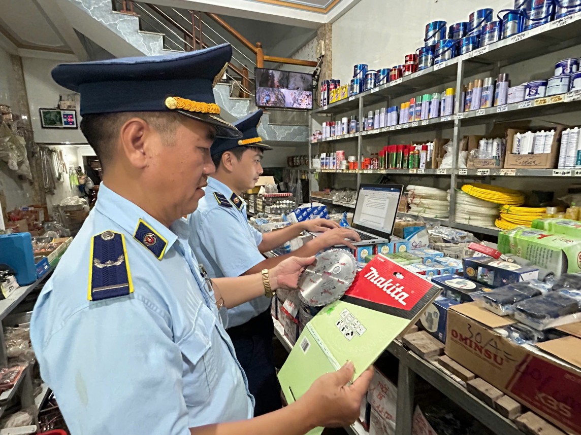 Cụ thể, Đoàn kiểm tra phát hiện lưỡi cắt gắn nhãn hiệu MAKITA, số lượng 14 cái; sen tắm gắn nhãn hiệu Caesar, số lượng 04 cái; keo chuyên dùng trong xây dựng gắn nhãn hiệu Titebond, số lượng 11 tuýp.