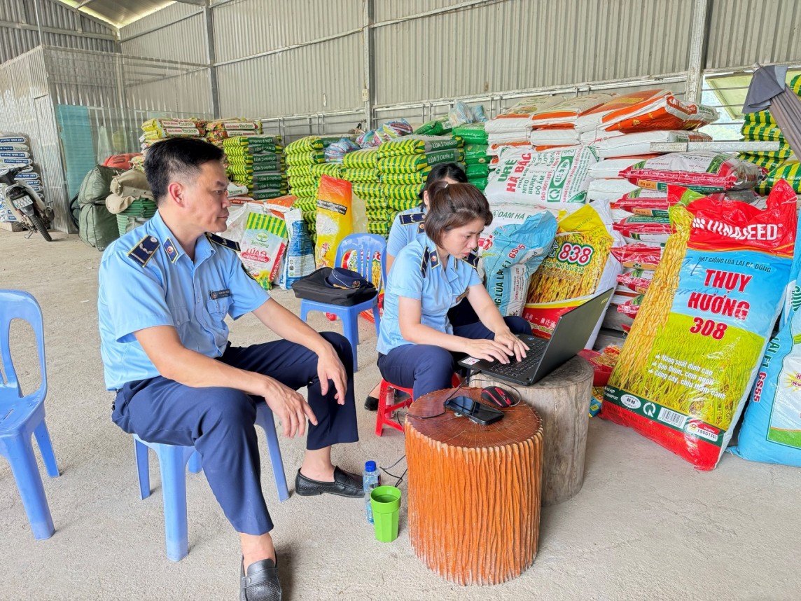 | Lực lượng chức năng kiểm tra hộ kinh doanh. (Ảnh: Cục Quản lý thị trường tỉnh Hà Giang) |