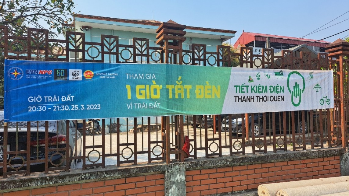 | Băng dôn tuyên truyền Giờ Trái đất được Công ty Điện lực Hà Nam treo tại các Điện lực và các điểm đông dân cư (Ảnh tư liệu năm 2023) |