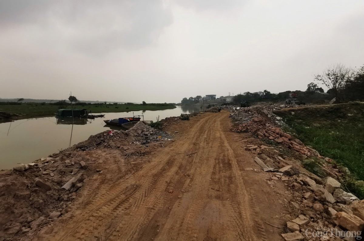 | Khu vực đổ trộm phế thải có dấu hiệu nắn dòng sông Hồng đe dọa trực tiếp đến trạm bơm thủy lợi và bờ kè tiền tỷ mà nhà nước đầu tư để phòng chống thiên tai, bão lũ. |