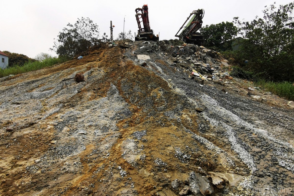 | Sau khi đổ trộm phế liệu, những bãi vật liệu xây dựng hình thành. |