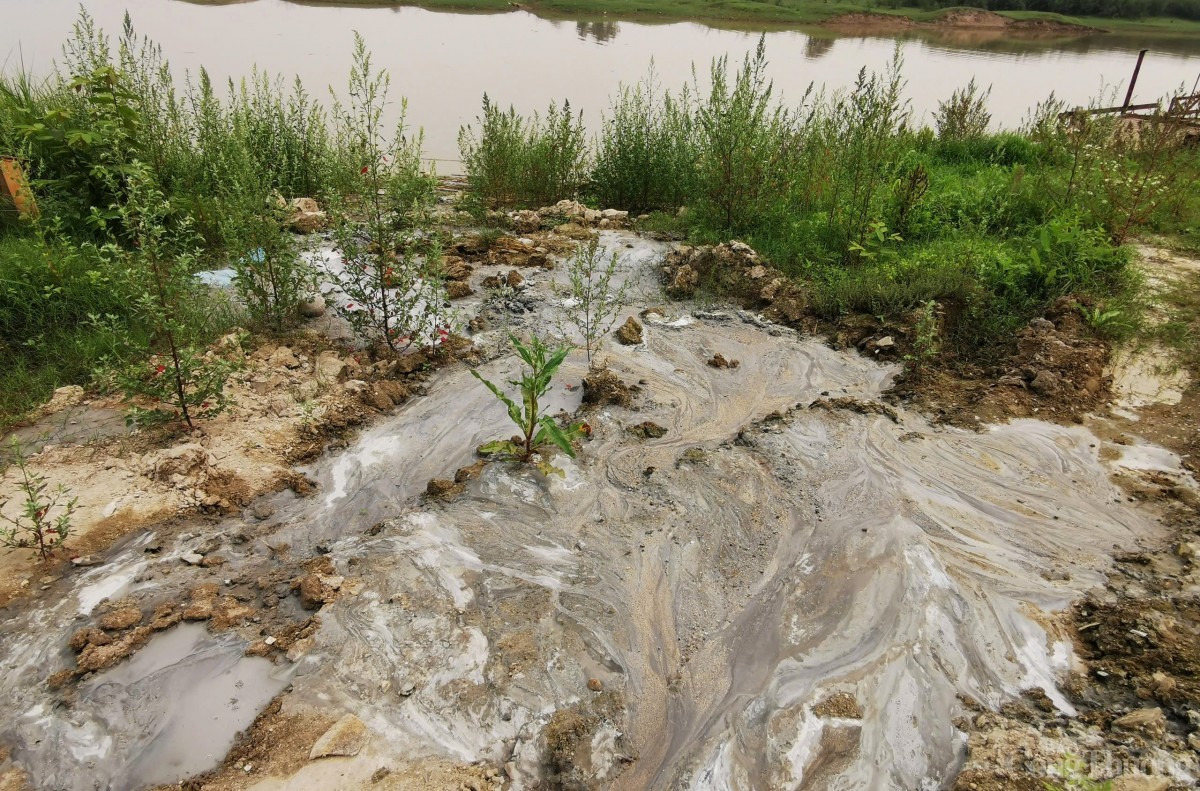 | Nguồn thải từ cơ sở kinh doanh vật liệu xả trực tiếp ra sông Hồng. |