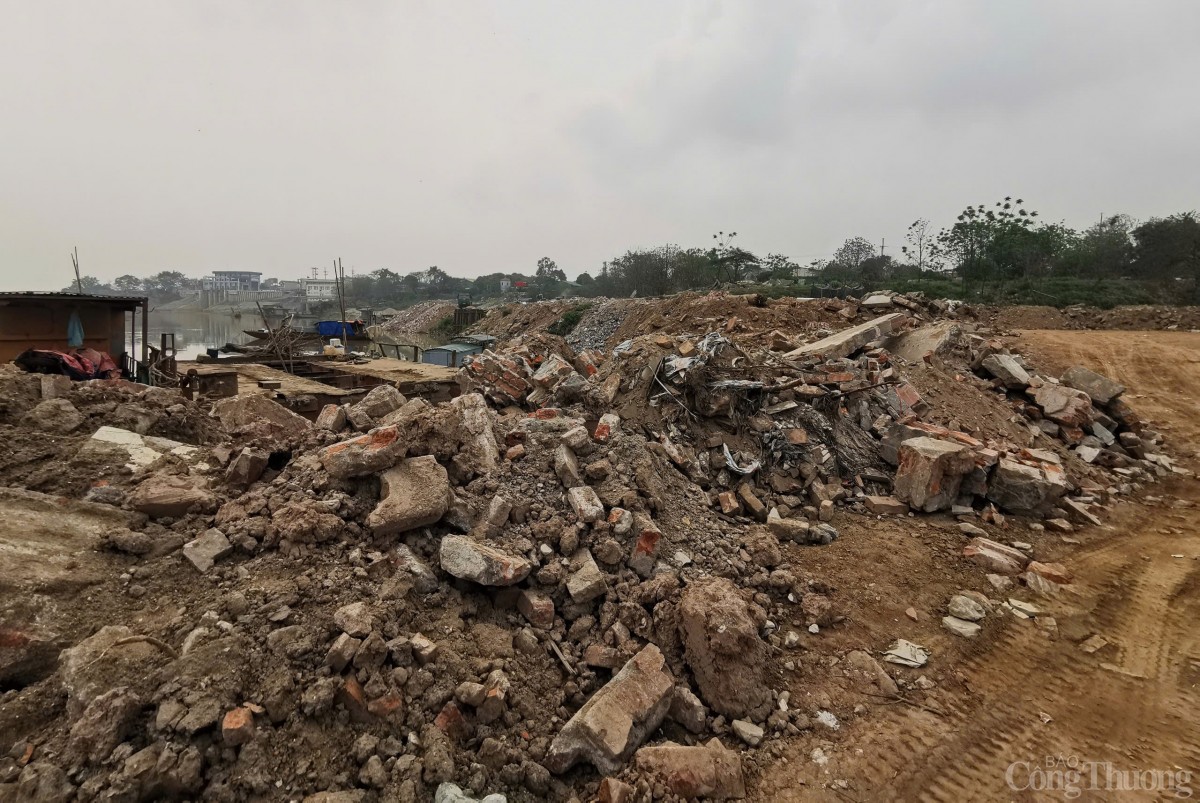 Theo ghi nhận, tại bãi phế thải: Bê tông, gạch vỡ, túi ni lông, bao tải... được chôn sâu ngay mép nước mỗi ngày đều lấn ra sông như những vết dầu loang nuốt trọn cả vùng lòng sông rộng lớn. Không chỉ có phế thải xây dựng, rác thải sinh hoạt cũng bị đổ trộm, biến khung cảnh vùng ven sông xanh tươi, thanh bình thành trở nên nhếch nhác.