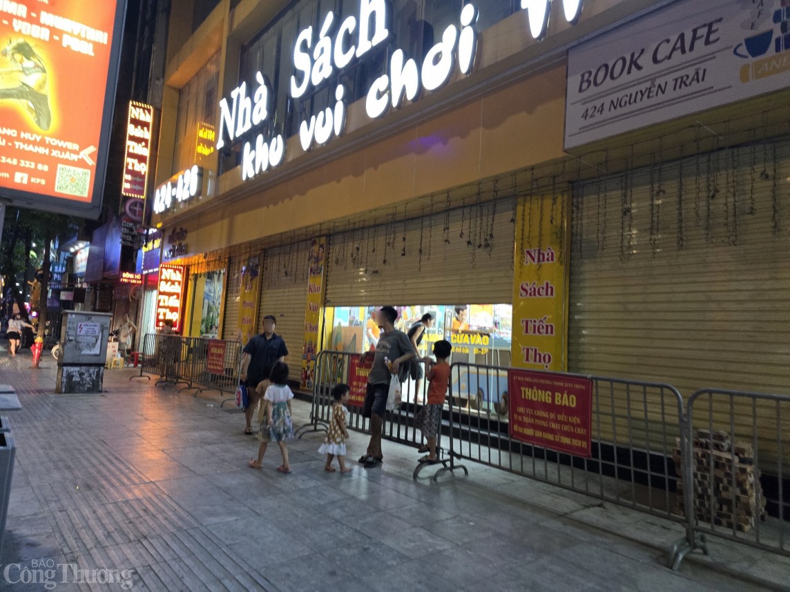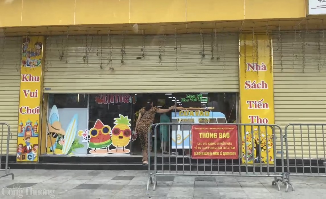 Trưa 1/5, theo ghi nhận của phóng viên Báo Công Thương, trước cửa nhà sách Tiến Thọ cơ sở đường Nguyễn Trãi có hàng rào bằng khung sắt, cùng với đó là biển cảnh báo với dòng chữ "Thông báo khu vực không đủ điều kiện an toàn về phòng cháy chữa cháy đề nghị người dân không sử dụng dịch vụ".