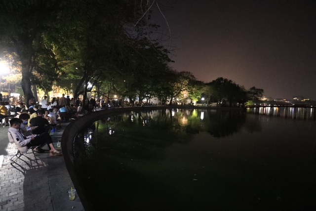 Nhiều địa điểm nổi tiếng tại Thủ đô Hà Nội như Bưu điện Bờ hồ, Cầu Thê Húc, Đền Ngọc Sơn đã tắt đèn hoặc giảm bớt các thiết bị chiếu sáng. Do là ngày cuối tuần nên đã có đông người dân có mặt tại phố đi bộ xung quanh Hồ Hoàn Kiếm. |