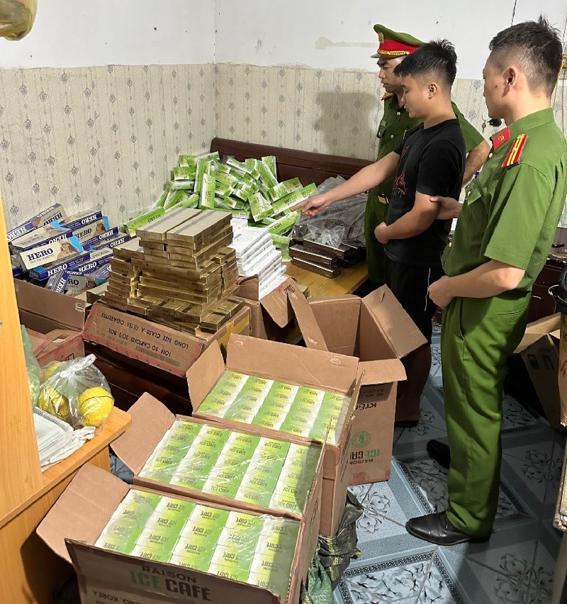 Tiến hành khám xét 2 kho hàng tại phường Nghĩa Tân, quận Cầu Giấy, cơ quan công an đã thu giữ 7.869 bao thuốc lá điếu do nước ngoài sản xuất, nhãn hiệu 555, RAISON, ESSE, ZEST, CANYON... Tất cả đều không có hóa đơn, chứng từ chứng minh nguồn gốc xuất xứ.