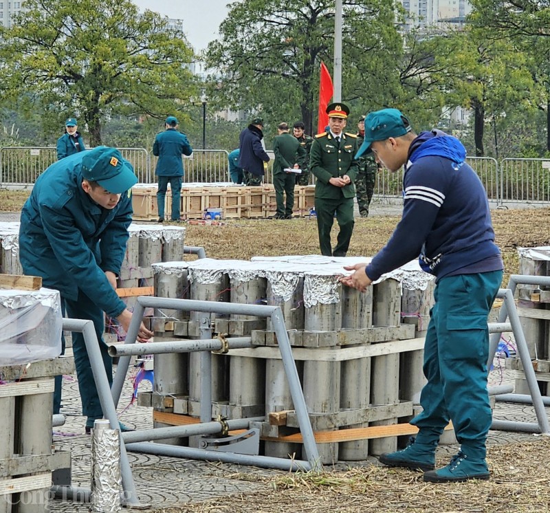 | Bên trong trận địa, các giàn pháo hoa tầm cao đã được lắp đặt cố định, sẵn sàng đưa pháo vào ống phóng. Đến thời điểm này, kịch bản bắn pháo hoa đã hoàn tất, theo đó ở từng khung giờ chính xác đến từng giây. |