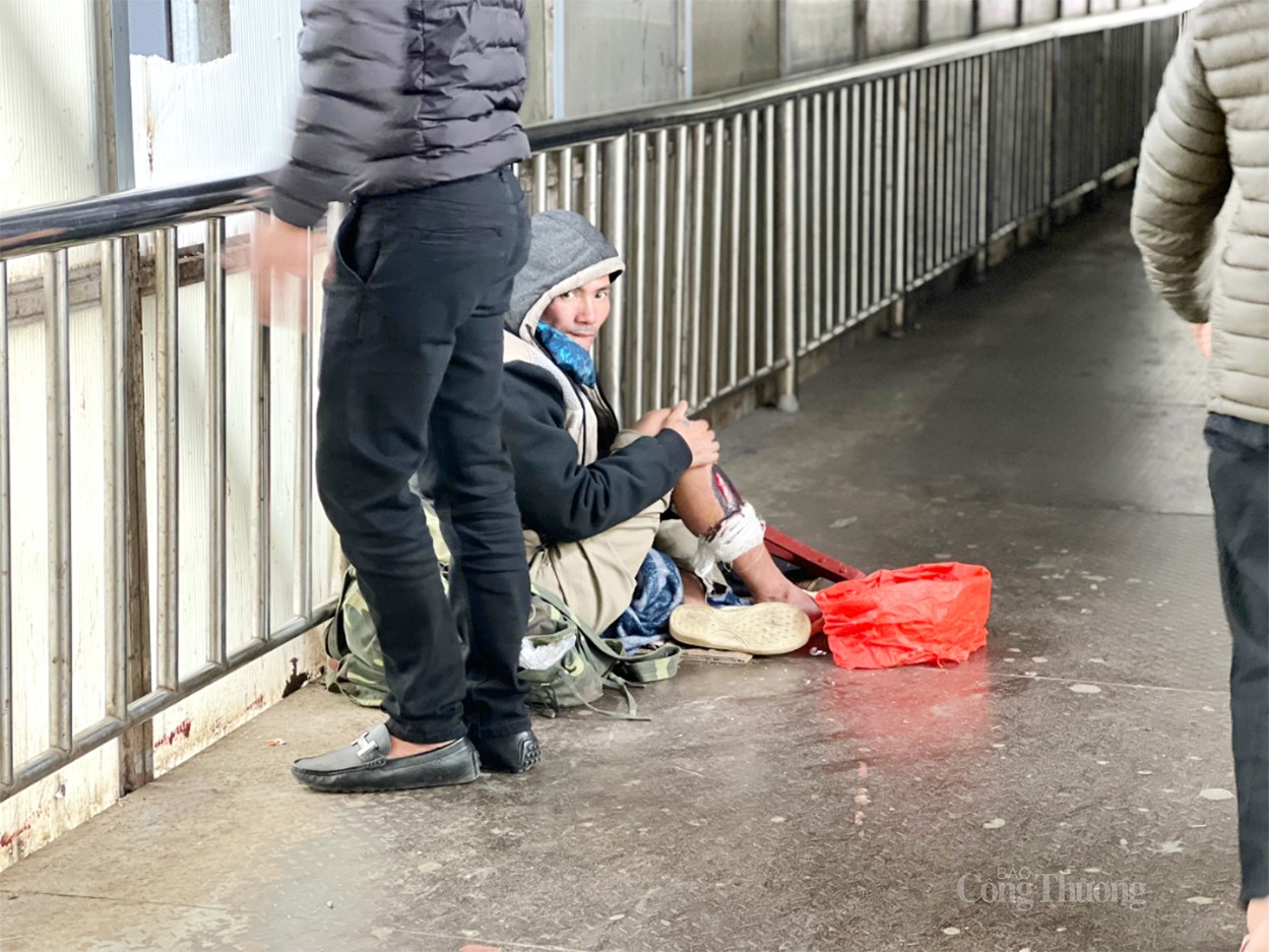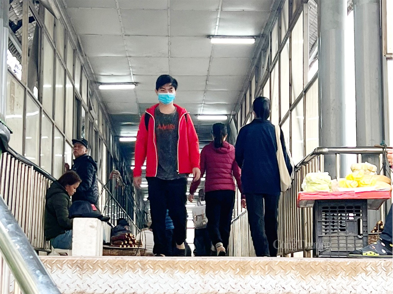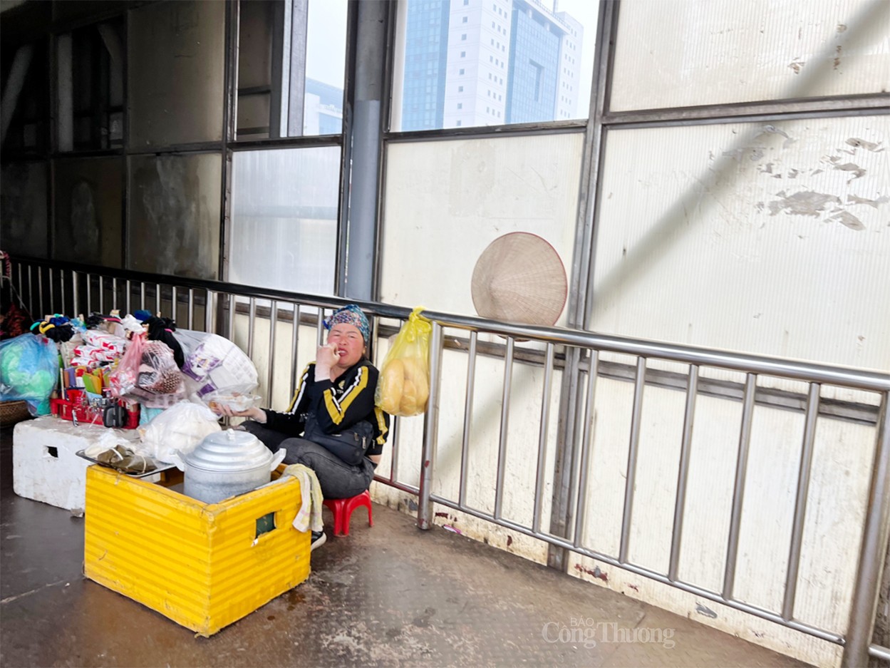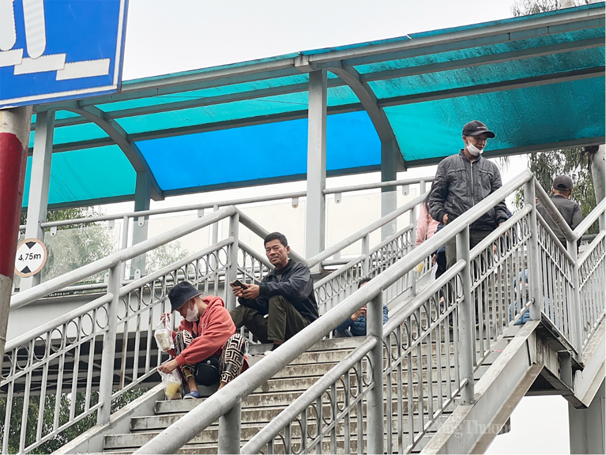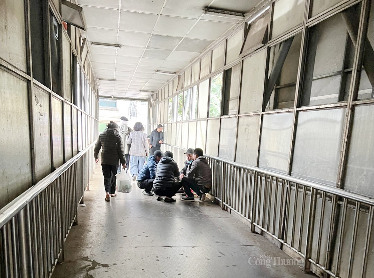 Cầu bộ hành trước cổng bệnh viện Bạch Mai không chỉ để hỗ trợ người dân qua đường mà còn là nơi tụ tập buôn bán, nói chuyện và thậm chí là nơi nghỉ ngơi của người bệnh. |